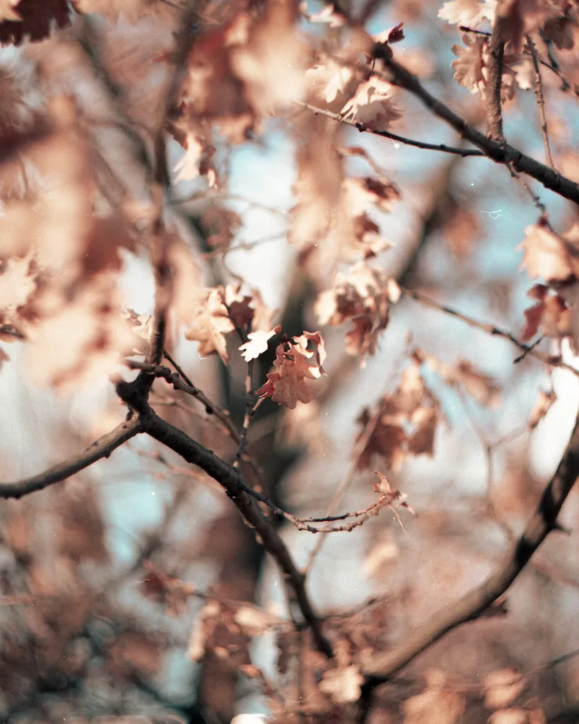 Dans ce second exemple, j’ai choisis de concentrer l’attention sur mon sujet, une feuille au centre de l’image, en ouvrant grand mon objectif pour rendre flou mon arrière plan.